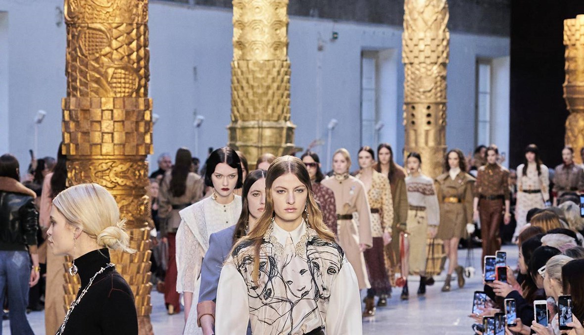 حقائب اليد الناعمة المزينة بتجديل سميك، وسلسلة من القمصان والفساتين والتنانير الملتفة، كانت مطبّعة بلوحات الفنانة المجرية ريتا أكرمان. تريد ناتاشا رامزي-ليفي أن تسمع صوت أولئك الذين ألهموها، وبهذه الطريقة تفتح حوارًا بين Chloé والنساء، من خلال عمل فني غزير الإنتاج يجسد ثقافات مختلفة وأنثويات عديدة. الرغبة التي انعكست في مختلف مقترحات الأزياء المختلفة: أول قامة سلسة تجسّد هويّة كلوي، مع سروال فضفاض وطيّات متعددة، وتنانير بوهيمية بأنماط الكشمير - التي وجدت أيضاً على الياقة الداخلية لمعطف - وسلسلة من الفساتين الخفيفة الطويلة بلون الكريم، أو اللون الوردي العتيق أو الخوخي المخلص للعلامة التجارية.