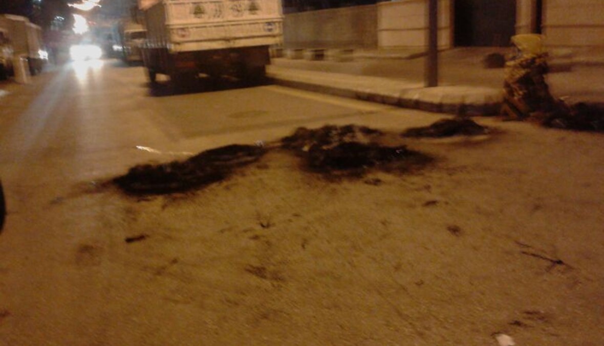 اقدم اصحاب المحال التجارية قرب شركة تعبئة الغاز وتلفزيون المنار في بئر حسن على اشعال الاطارات في الطريق احتجاجاً على الاجراءات الامنية.