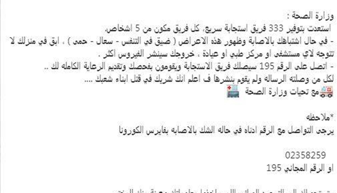 لا تطلبوا الرقم 195: هذا "التعميم" لم تصدره وزارة الصحة حول كورونا FactCheck#