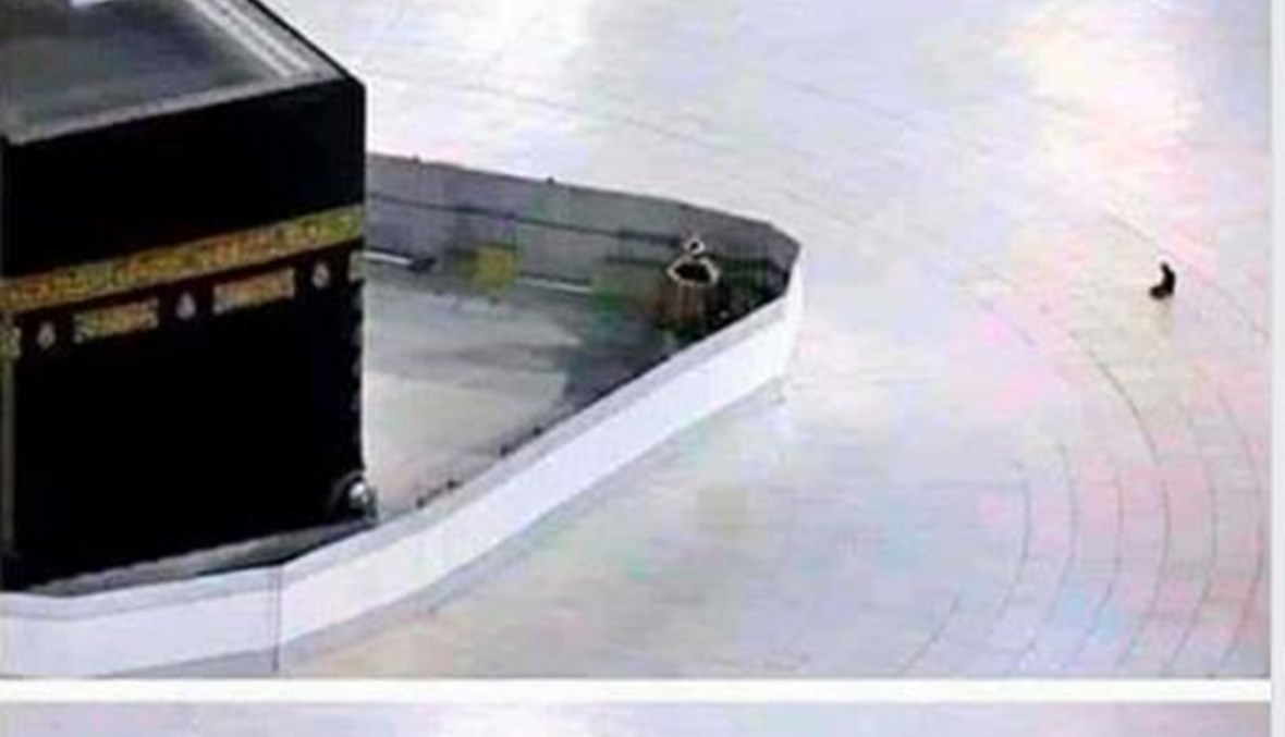 يتداول مستخدمون لوسائل التواصل الاجتماعي صورة رجل جاثٍ على ركبتيه بالقرب من الكعبة. ويدعي ناشروها أنها لعامل نظافة يُسمح له وحده بالجلوس في المكان خلال فترة تفشي وباء #كوفيد 19. لكن هذه الصورة متلاعب بها. فقد نشرت نسختها الأصليّة الصحيحة وكالة "أسوشييتد برس"، ثم تلاعب بها مستخدمون، حاذفين بعض عناصرها، ونشروها على مواقع التواصل.