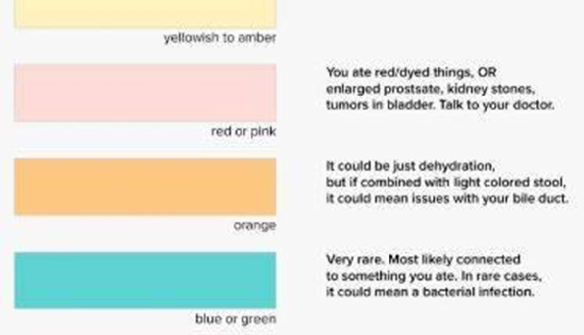 واستشر الطبيب عند تحوّل البول إلى اللون البرتقالي إذ يكون أحد أعراض حالة صحيّة خطيرة، بما في ذلك أمراض الكلى والمثانة، لا سيّما عند شحوب لون البراز، واصفرار الجلد والعينين.