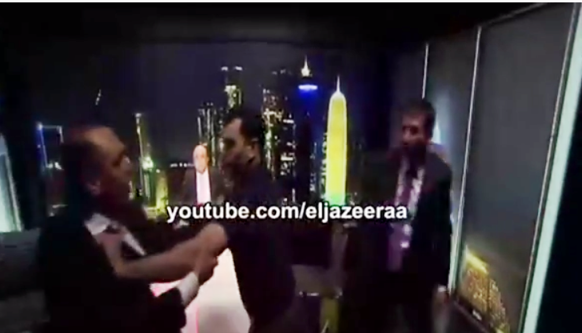 ومع احتدام النقاش في الحلقة، بدأ الضيفان يفقدان أعصابهما وأخذا في التطاول على بعضهما لفظيًا، ثم تطور الأمر إلى حد الاشتباك بالأيدي ليقوم فريق العمل بالبرنامج بالفصل بينهما، وقطع بث البرنامج.
