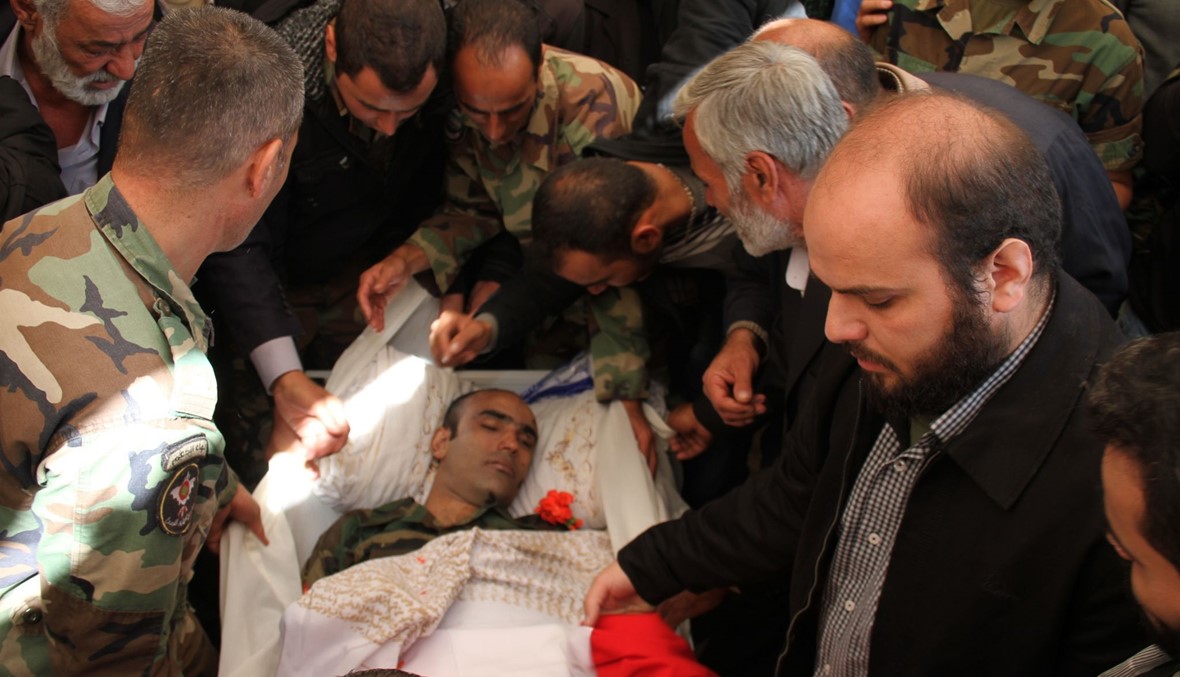 وشارك العقيد الركن فؤاد العانوني ممثلا قائد الجيش ووزير الدفاع وممثلون عن قادة الاجهزة الامنية وحشد كبير من ابناء وفعاليات المنطقة. وانطلق موكب التشييع من امام منزله حيث جال شوارع البلدة باتجاه مدافنها حيث ووري الثرى وحمل رفاق السلاح النعش الذي لف بالعلم اللبناني على وقع موسيقى لحن الموت عزفته فرقة من عناصر الجيش .