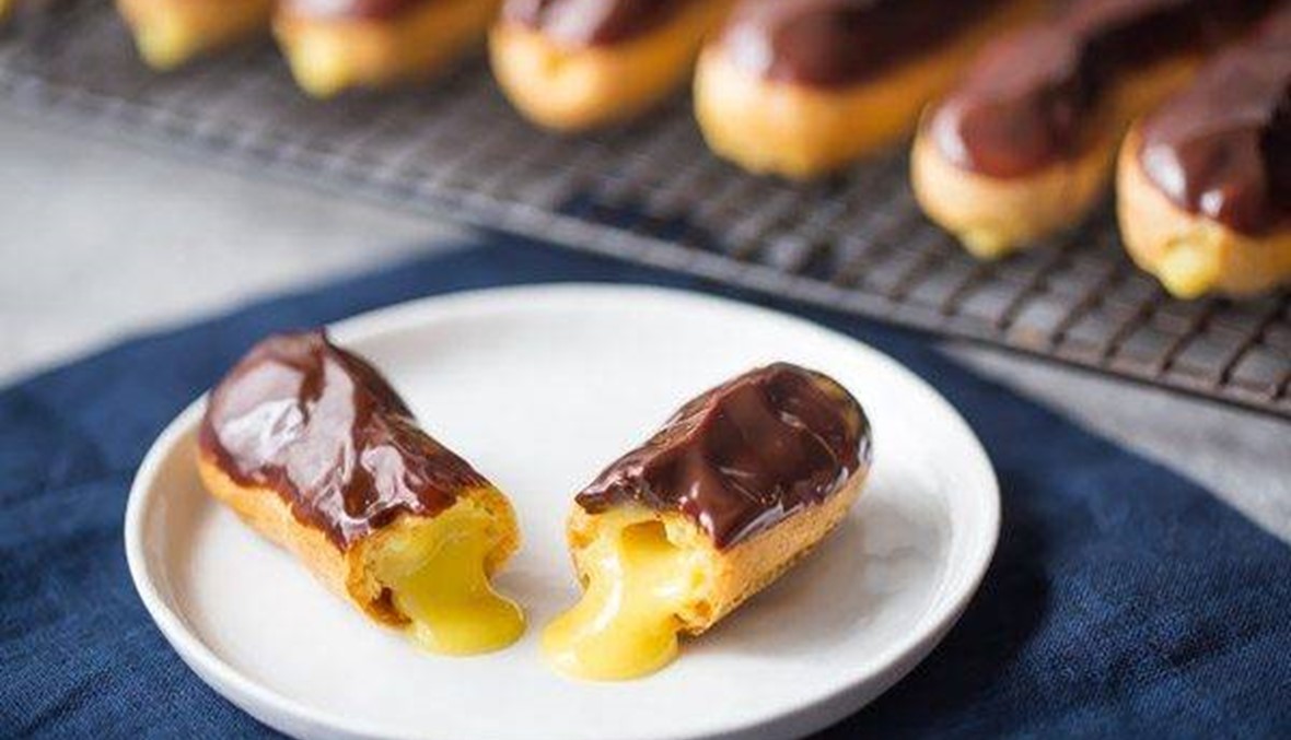 - نفتح كرات الاكلير من الوسط ثم نضع ملعقة من الحشوة ونقدمها مزينة على وجهها بصلصة الشوكولا .