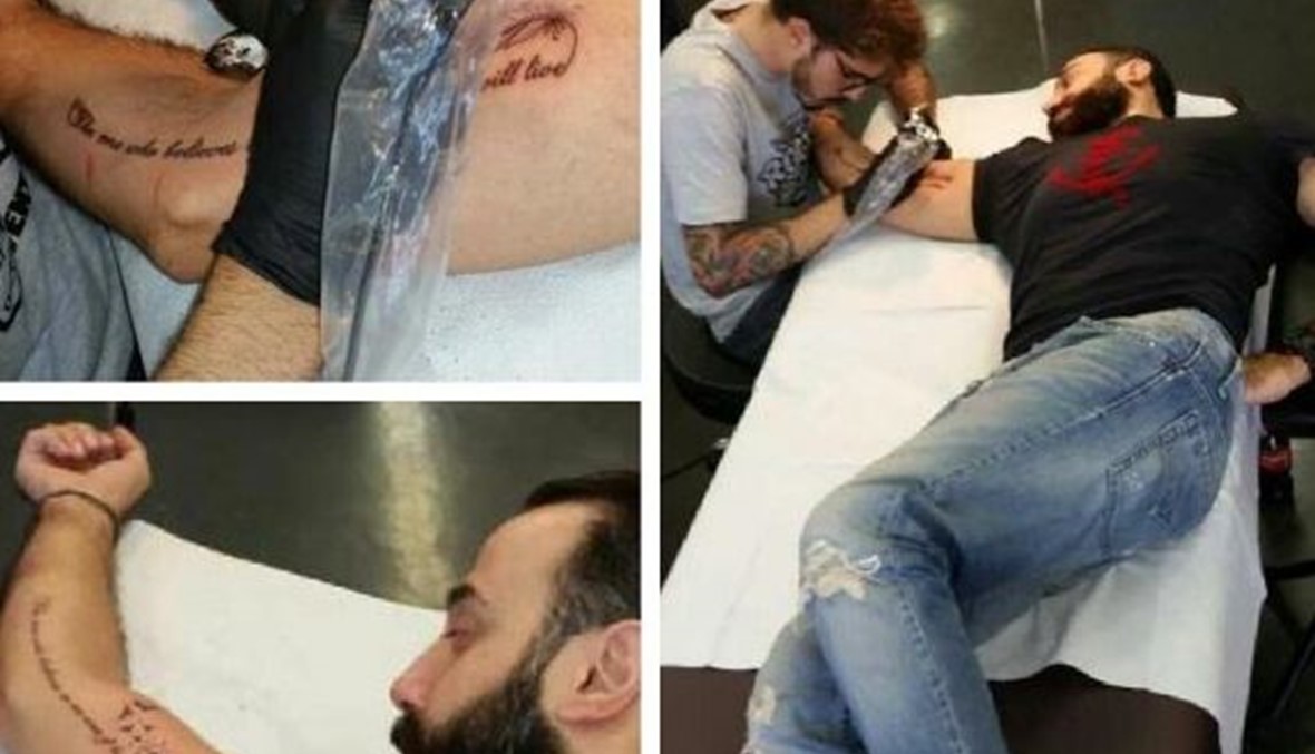 واختار قصي كتابة الجملة الآتية عبر الوشم: The one who believes in me, even if he dies will live