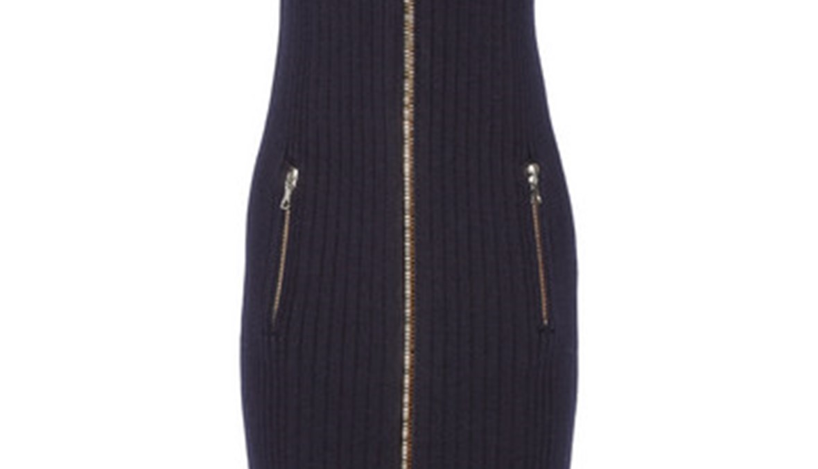 من الماركة السويدية الرائجة فستان من قماش الصوف بشكلٍ مميز من دون أكمام فيمكن أن تنسّقي معه أي قميص من أي لون. ما يميز أيضاً التصميم تفاصيل السحابة الذهبية التي تلائم أيضاً الجيبين.
