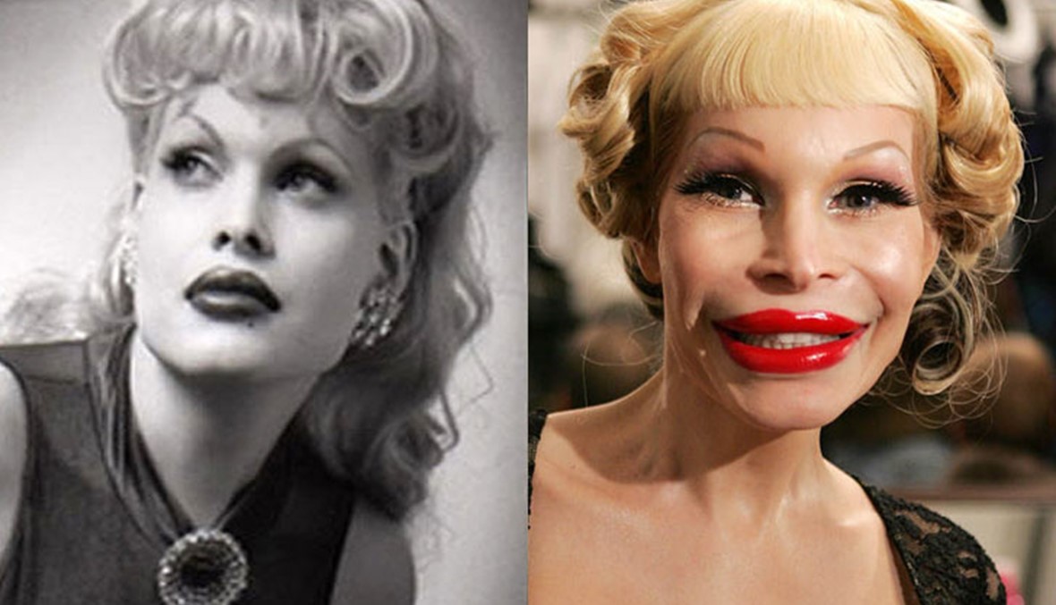 العارضة السابقة والمغنية الأميركية أماندا لوبور بدت بعد الجراحة كباذنجانة ملتوية حيث الفم والذقن غير متناسقين مع الوجه.