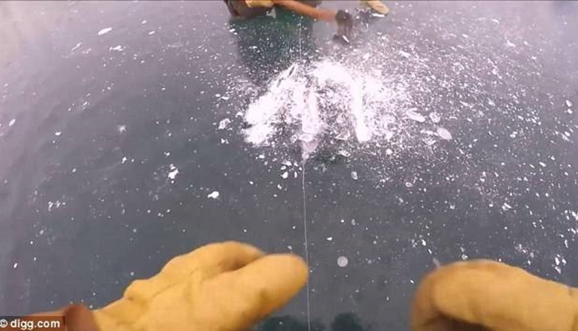صوّرت مجموعة من الشباب فيديو مثيراً في أثناء قيامهم بصيد السمك داخل الجليد، ونشروه على وسائل التواصل الاجتماعي. جريدة "الدايلي ميل" نشرت الفيديو المثير، أثناء رؤية أحد الشباب لسمكة متوسطة الحجم متجمّدة تحت القشرة الجليدية.