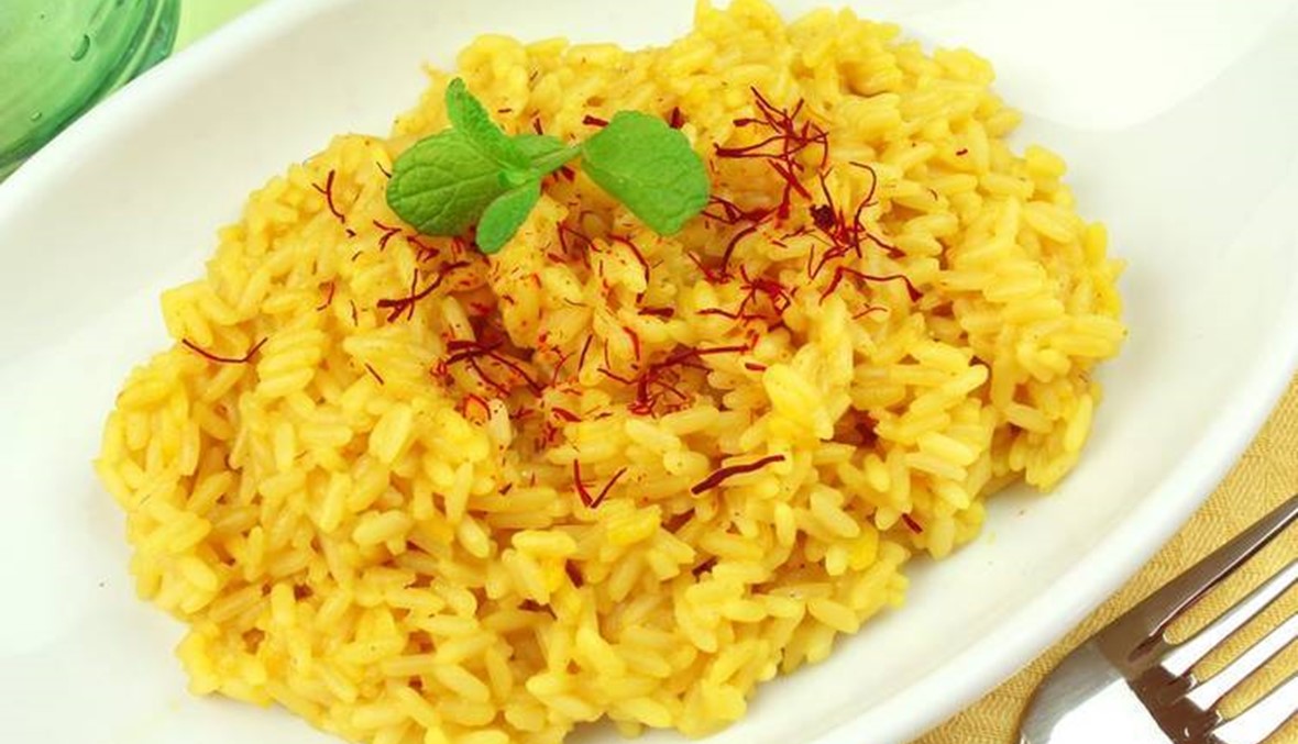 يطهى الأرز في طنجرة بعد وضع القليل من الزبدة فيها.