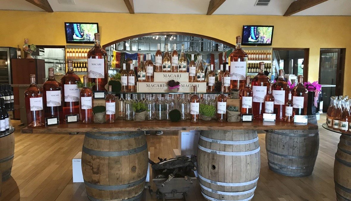 Down the road in Peconic, bachelorettes and tourists clambered from limousines and buses at Pindar Vineyards, noisily filling the large outdoor deck and nearly drowning out karaoke.