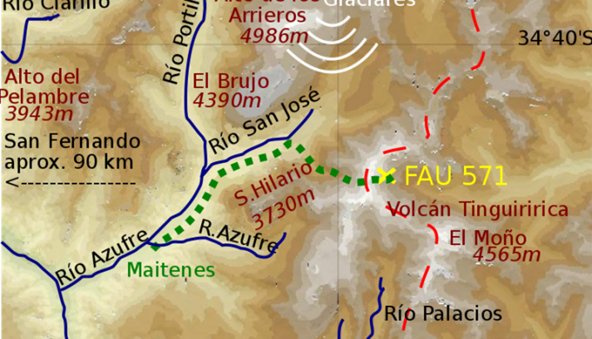 واجهت الرحلة مشكلة مبكرة جداً وتحطم وكسر جزء من الجناح الأيمن، ثم إنطلق الجزء المتحطم وضرب زعنفة الطائرة وألحق بها ضرراً كبيراً ترك فجوة في وسطها، وكان الجناح الأيسر بدوره متحطماً بعد إصطدامه بإحدى القمم الجبلية، ثم تحطم بعد ذلك جسم الطائرة على إرتفاع 600 3 متر في منطقة نائية في إقليم مالارغي على الحدود الأوروغويانية التشيلية. حوصر الناجون في إحدى القمم بين الثلج والبرد، وعلموا بعد إعادة تركيب راديو كانوا قد وجدوه في قمرة قيادة الطائرة أن عمليات البحث قد أوقفت بعد ثمانية أيام من الحادث، خاصة وأن لون الطائرة الأبيض كان لا يميز مع الثلج.