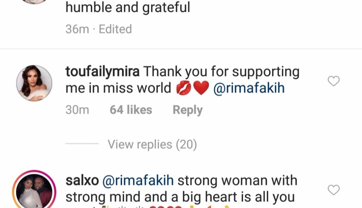 وكان لافتاً شكر الوصيفة الأولى #ميرا_طفيلي لفقيه على دعمها في ملكة جمال العالم.