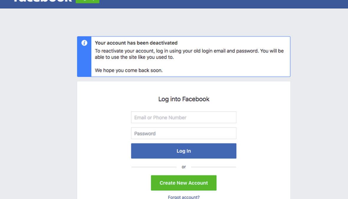 - تعطيل الحساب يمكنك من تسجيل الدخول مجدداً وقت ما تشاء وستجد كل شيء على حاله، وتبقى الصفحة مختفية ما دام الحساب معطّلاً.
