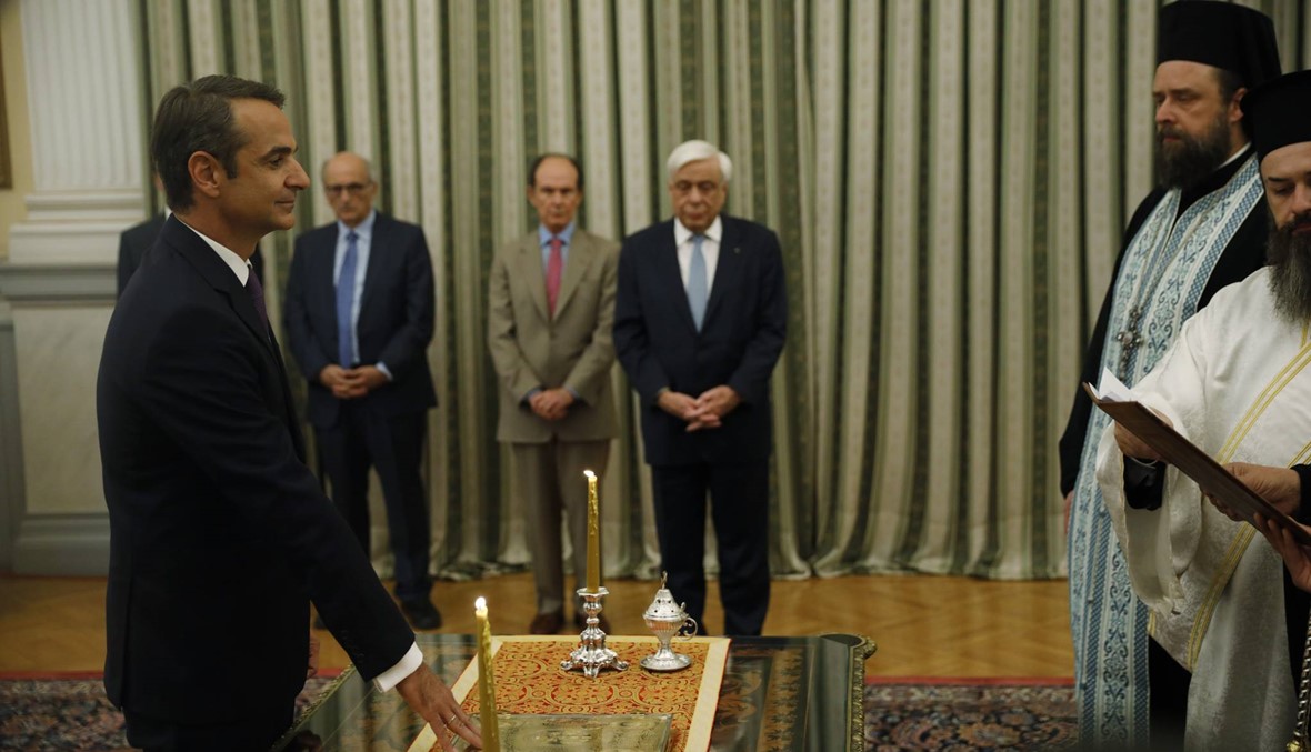 ويتسلم الزعيم المحافظ المعزز بنحو 40 بالمئة من الاصوات، رسميا مقاليد الحكم من رئيس الحكومة المنتهية ولايته الكسيس تسيبراس، زعيم حزب "سيريزا" اليساري الذي حصل على 31,5 بالمئة من الاصوات الاحد.