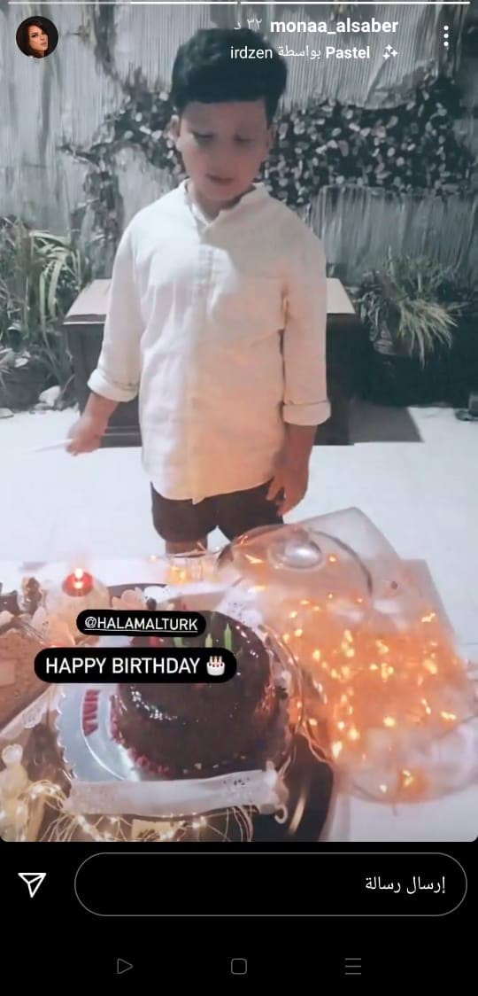 ونشرت السابر مقطع فيديو عبر خاصية القصص المصوّرة الملحقة بحسابها الرسمي على تطبيق "إنستغرام"، خلال معايدة ابنها الأصغر محمد الترك شقيقته المغنية الشابة، وتمنيه لها عاماً سعيداً أمام قالب الحلوى المخصص لعيد ميلادها.