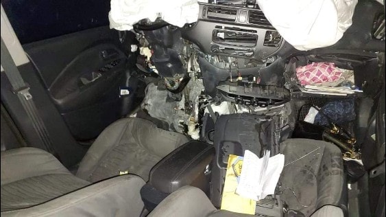 وأظهرت الصور فداحة الحادث الذي تعرض له شقيق الفنانة نادين الراسي بسيارته التي يقودها عائداً من سوريا. وعمل عناصر الدفاع المدني مركز المصنع على سحب الجثتين من داخل السيارة ونقلهما الى مستشفى "تعنايل العام".