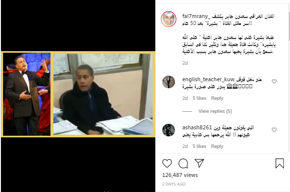 تداول رواد مواقع التواصل الاجتماعي مقطع فيديو للمطرب العراقي سعدون جابر خلال كشفه أخيراً قصة أغنيته الشهيرة "على الله يا بشيرة"، علماً أنّ قصص حب كثيرة نُسجت لعقود حول علاقته بشابة تحمل اسم بشيرة.