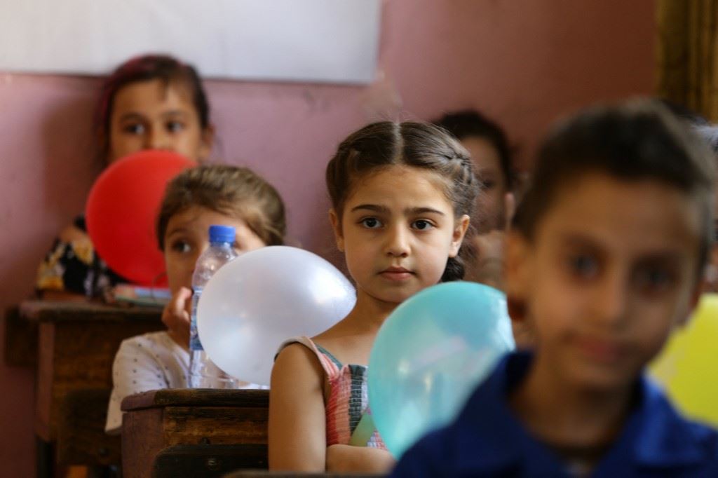 التلاميذ السوريون العائدون من العطلة الصيفية يحضرون اليوم الأول من المدرسة في العاصمة السورية دمشق (أ ف ب).