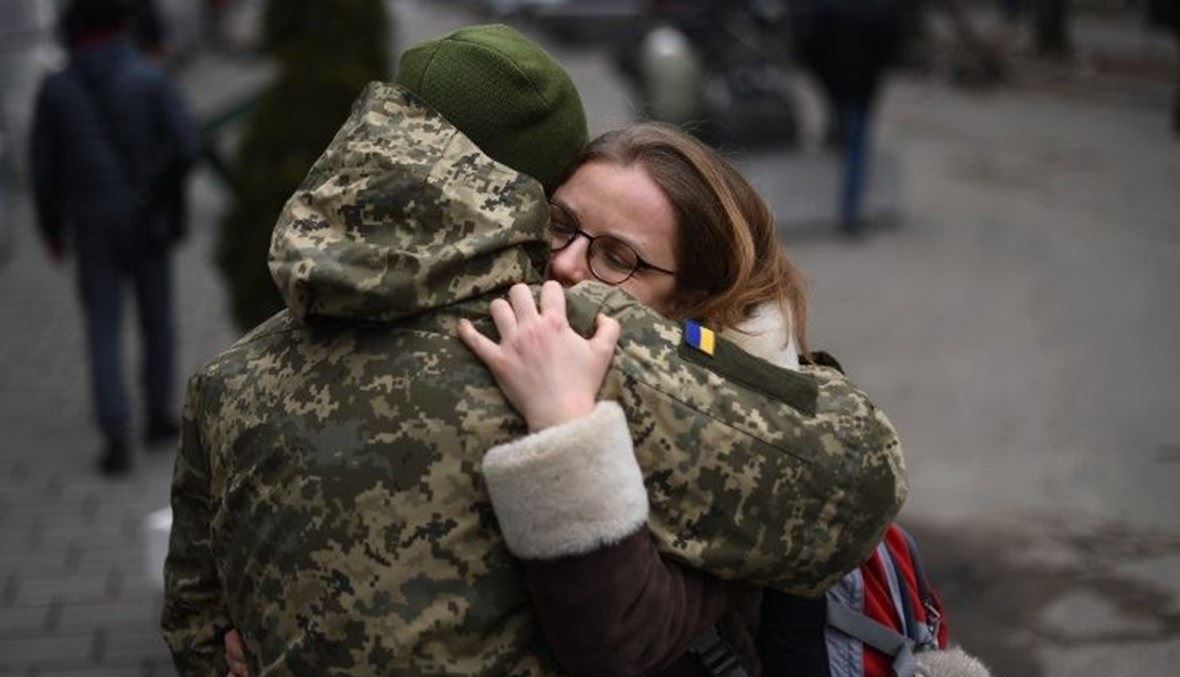 وداع في الحرب. إحدى صور "وكالة الصحافة الفرنسية" التي تؤرخ يوميات الصراع الدامي في أوكرانيا.