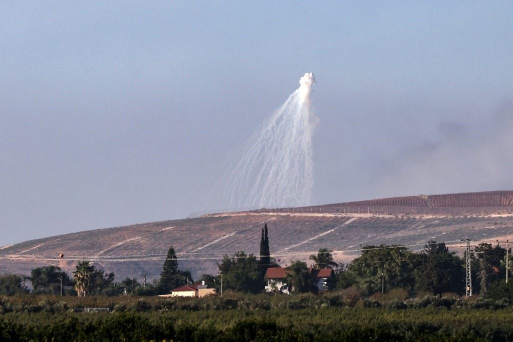 إسرائيل تُطلق قنابل فوسفورية فوق قرى حدودية (أ ف ب).