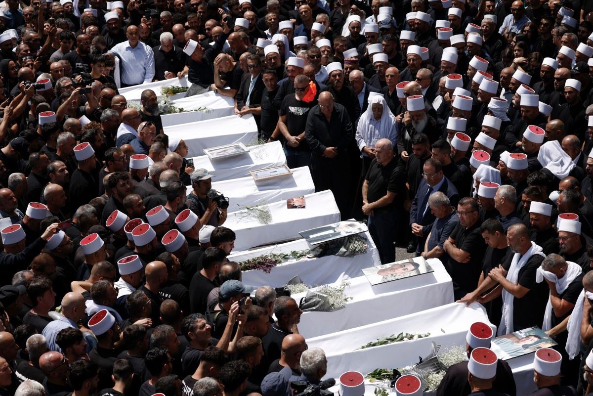 من مأتم الضحايا في مدل شمس. ( ا ف ب).