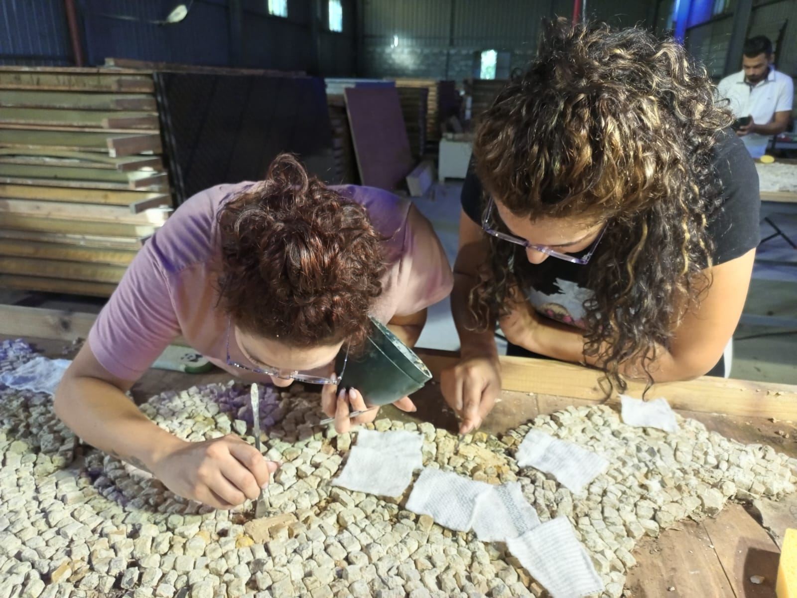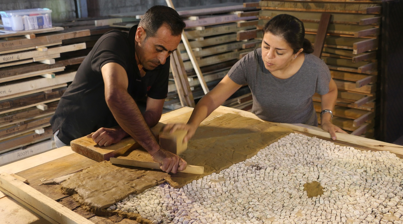تعلم المتدربون من خلال التجربة العملية منهجية توثيق وحفظ الفسيفساء المرفوعة باستخدام ملاط الجير لتثبيتها وإعادة تركيبها مرة أخرى، جنبًا إلى جنب مع أساليب وقائية تناسب تخزينها على المدى الطويل.