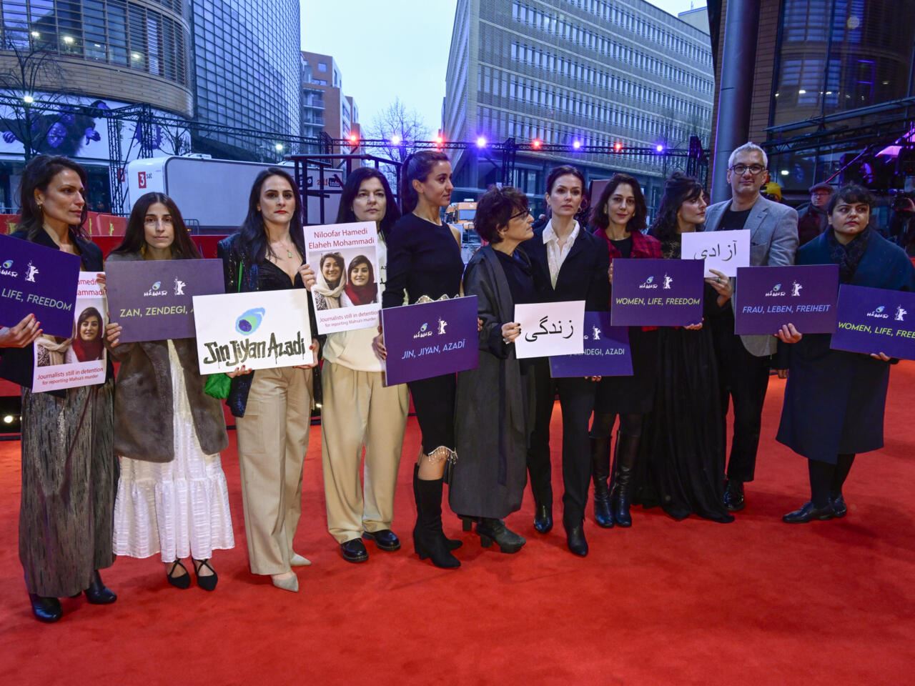 سبيده فارسي مع إيرانيات معارضات في مهرجان برلين في شباط 2023 (أ ف ب).