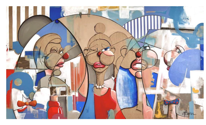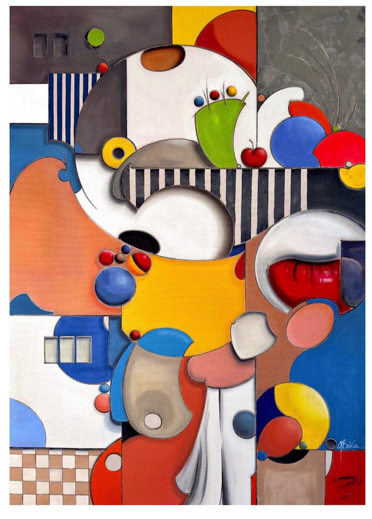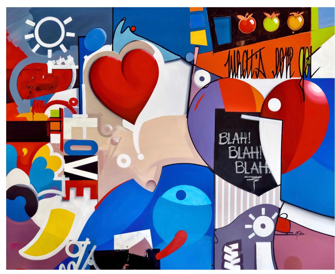 يتضمّن المعرض 12 لوحة مرسومة بألوان صاخبة، و16 أخرى مرسومة على الورق. وتختلف المواضيع التي تحملها كلّ واحدة منها، من أحاديث ثقافيّة وخطاب سياسيّ وصولاً إلى موعد غراميّ.