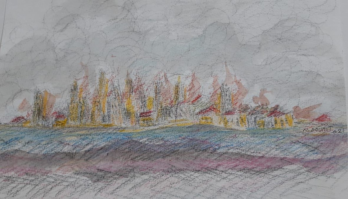 أرسل إليَّ النحّات والرسّام الكبير نعيم ضومط، ظهرَ أمس، بواسطة الواتس اب، صورًا لبيروت، مرسومةً على ورق، ومنحوتةً نحتًا (مائيًّا)، لكن بالطريقة التي تُحبط كلّ تفجير، وتفوز على كلّ موت. أعماله التراجيديّة حضّتني على رؤية ما قد لا يُرى من حياةٍ إلّا بالتأويل الشعريّ، وبالصبر الجميل على الملمّات. أثأرُ لكِ بالثأر الذي لا وصفَ يصفُهُ، ولا نوعَ يحدُّهُ، ولا شكلَ يصطفيه، ولا معنى يأسره، ولا مذهب، ولا طائفة، ولا دين. أثأرُ لكِ بالأنوثة، بالرجولة، بالبحر، بالموج، بالزبد، بالغيم، بالقمر، بالعشب النابت على الحيطان، بالأطفال، بثياب الأبناء القتلى، بالنجوم، ...