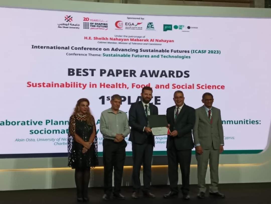 حصل الدكتور آلان الأوسطه على جائزة أفضل ورقة بحثية عن دراسة بعنوان "التخطيط التعاوني لروبوتات الدردشة بالذكاء الاصطناعي في المجتمعات الصحية عبر الإنترنت" في المؤتمر الدولي لمستقبل مستدام (ICASF 2023)، على هامش مؤتمر كوب 28 في دبي.