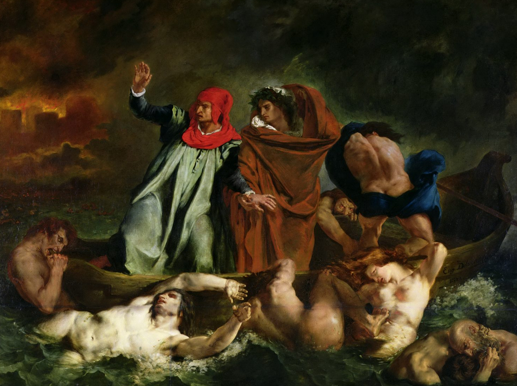 ومن تلك القصيدة الملحمية استوحى الفرنسي أُوجين دولاكروَى (1798-1863) لوحتَه "مَركب دانتِه" (1822) هي اليوم بين روائع اللوڤر، تمثِّل دانتِه يَعبُر في مركبه نهر سْتيكْسْ وفوقه هالَةُ الشاعر ڤِرجيل، مثالِه الأَعلى في الشعر.