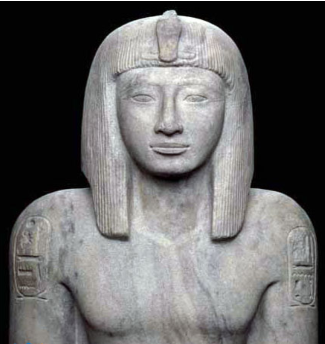 6. كليوباترا. عُرفَت بــ"كليوباترا فيلوباتر" (69 - 10 ق.م.) . هي آخر السلالة المقدونية. حكمَت مصر بعد وفاة الإِسكندر بين 51 و30 (ق.م.). كانت جميلة جدًّا وذات شخصية قوية وذكية، أَسَرَت بحبها الرجال الذين أَحبُّوها. مع أَن لغتها الأُمّ إِغريقية، تفرَّدَت بتَعَلُّمها اللغة المصرية حتى إِتقانها. نزاعُها مع أَخيها بطليموس الثالث عشر سبَّب طردها من مصر التي كانت فترتئذٍ مملكةً تحت الحماية الرومانية، وكانت أَهراءَ قمحِ الشعب الروماني. عملت كليوباترا على العودة إِلى مصر، بمساعدة يوليوس قيصر، فأَسرتْه بجمالها وأَقنعتْه أَنها ستكون في الحكم أَفضل من أخيها. ساعدَها القيصر فتغلَّبت على أخيها بطليموس وتولَّت العرش. بعد مصرع يوليوس قيصر واقتسام أُوكتافيوس وماركوس أنطونيوس العالم الروماني، كانت مملكة كليوباترا من نصيب ماركوس أَنطونيوس الذي أُغرم بها كثيرًا ما سبَّب فقدانَه حظْوته في روما، وانتهى به الأَمر إِلى الانتحار إِثر انتصار أوكتافيوس عليه بعد معركة أَكتيوم سنة 31 ق.م. وحين تناهى إِلى كليوباترا انتحارُ حبيبها انتحرت بعده مباشرةً. بعد وفاتها أَصبحت مصر مقاطعة تابعة للأَمبراطورية الرومانية معلنةً نهاية العصر الذي ابتدأَ مع الإِسكندر الكبير (336-323 ق.م.).