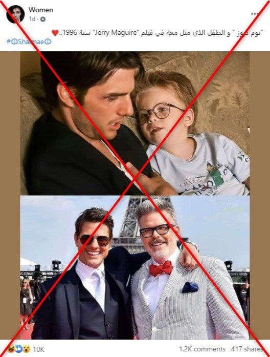إلا أنّ من يظهر طفلاً إلى جانب توم كروز ليس نفسه من يظهر في الصورة الثانية.