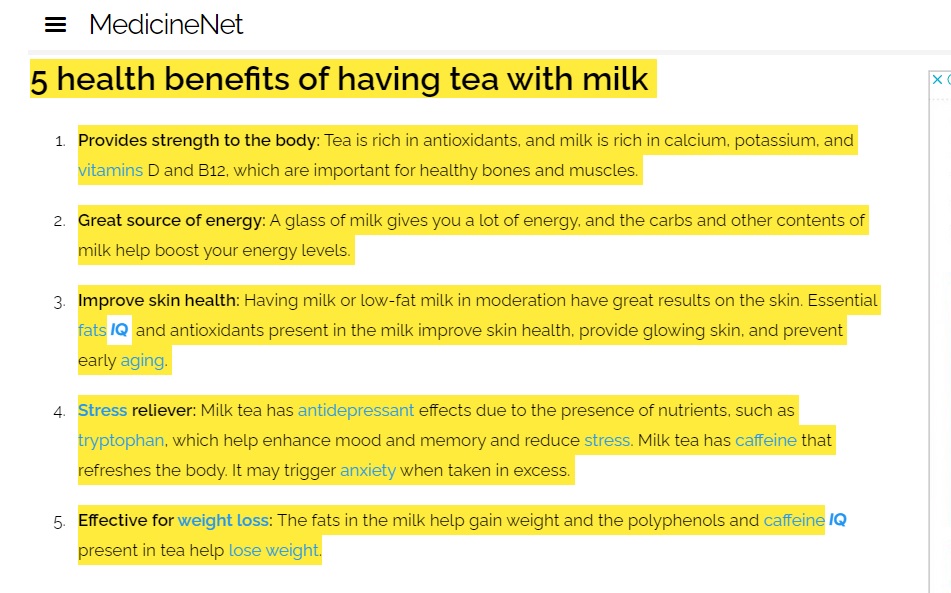 وهو ما يفسر تباين نتائج الدراسات الخاصة بتأثيرات بعض المكونات الغذائية على صحة الإنسان، منها الحليب والقهوة والشاي، وأخيرا الشاي بالحليب. (هنا) و(هنا) و(هنا)