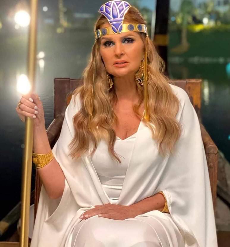 من بين الإطلالات الجذابة أيضاً، المطربة نسمة محجوب، التي اختارت فستاناً من اللون الكحلي، المزود بكسرات من منطقة الخصر، واعتمدت على الشعر الكيرلي الذي تميزت به الكثير من ملكات العصر الفرعوني.
