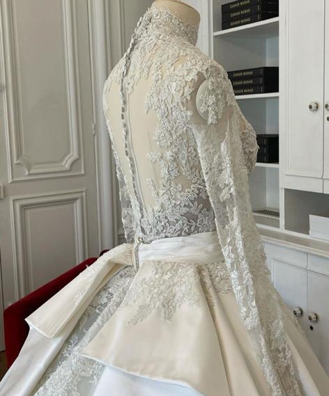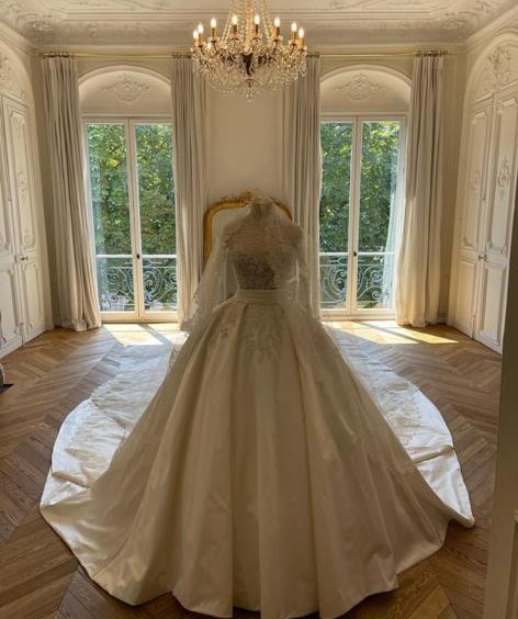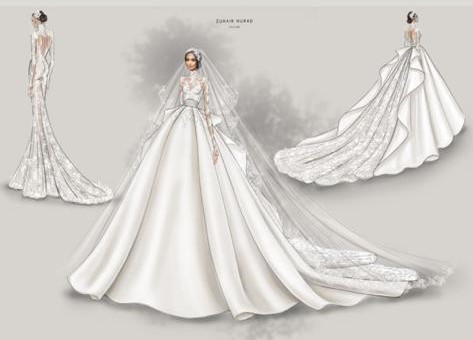 أصرّت جاسمين توكس أن يكون فستان زفافها من تصميم زهير مراد، فمن اللحظة الأولى التي شاركت فيها بعرض أزياء له، قرّرت أن يكون هو من يصمّم فستانها لليوم الكبير. هذا ما صرّحت به جاسمين للصحافة العالميّة. فأرسلت فكرتها الملهمة للمصمّم المبدع وشرحت ما تحلم به، وهو بدوره أرسل لها رسماً أولياً للفستان كان بالنسبة إليها أجمل تصميم لا يحدّه زمن رأته في حياتها.