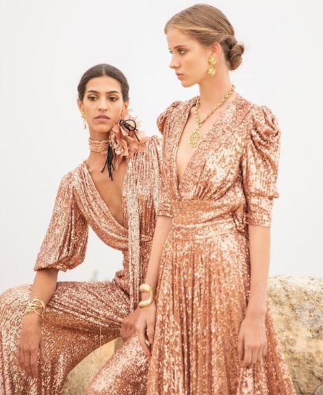 صحيح أن اللون الأبيض رائع، مميّز، وأنيق، ولكن، ألا تظنين أنه من الأفضل تركه للعروس في مثل هذا اليوم لكي تتألق وتبرز هي من خلاله وتكون مختلفة عن الجميع؟ لا تخافي، لن يخفت بريق حضورك خصوصاً إذا اخترت مثلاً التألق بالدرجات المعدنيّة، كالذهبي، الفضي، البرونزي، أو مزيج من درجات مختلفة من الألوان المذكورة، أو اختيار أي لون تحبينه شرط أن يكون مطعماً بالترتر الوامض. على سبيل المثال، إذا اخترت لوناً داكناً كالأسود، الدخاني، الزيتي، أو الأخضر، أو أي لون ترابي حيادي اجعليه من النسيج البرّاق أو مطرّزاً بالحبيبات الوامضة.