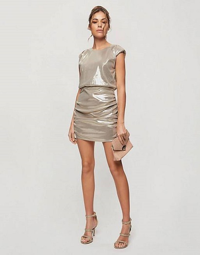 Miss Selfridge Metallic Drape Mini Dress in Silver $48