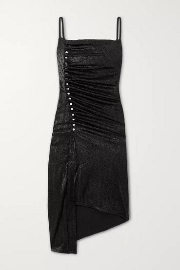 Paco Rabanne Asymmetric Ruched Metallic Stretch-Jersey Midi Dress $414