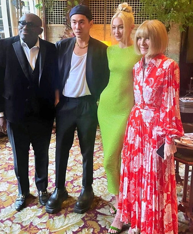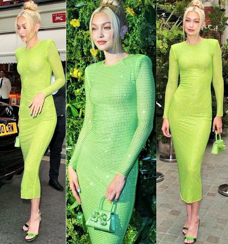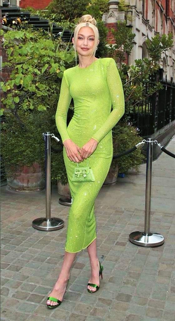 مرّة أخرى، تتصدّر جيجي حديد أخبار الموضة لارتدائها أحد الألوان الأكثر شيوعاً بعد اللون الوردي لهذا الموسم وهو الأخضر الفستقي النيوني، وقد اعتمدت هذا اللون في حفلة خاصة لمجلّة "فوغ" بنسختها البريطانيّة بالتعاون مع علامة Self-Portraitالتي باتت جيجي سفيرتها الجديدة، وحضر الحفل الصيفي مشاهير من عالم الموضة، الغناء، والتمثيل، وشخصيات ملهمة من المجتمع البريطاني.