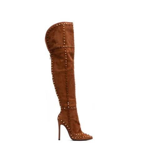 لإطلالة عصرية مريحة، اختارت الإعلاميّة ديالا مكّي جزمة مدبّبة ومزيّنة بالمساميربحدود الورك بكعبٍ عالٍ ونمط جلد الفهد المموّه، نسّقتها فوق بنطلون ضيّق من الدنيم، وكنزة محبوكة من الصوف بتفصيل الضفائر ولون البيج الحيادي. ورغم أنها لم تفصح عن علامة الحذاء المميّز جدًا، إلا أننا نقدّر أنه من علامة "جينيفر لي" Jenniferle المميّزة بتصاميم الأحذية المزيّنة بالمسامير خصوصًا الجزم الطويل جدًا، وهي متوافرة للبيع فقط عبر موقع مصمّمة الأحذية على فايس بوك. اخترنا لك جزم من المجموعة نفسها: