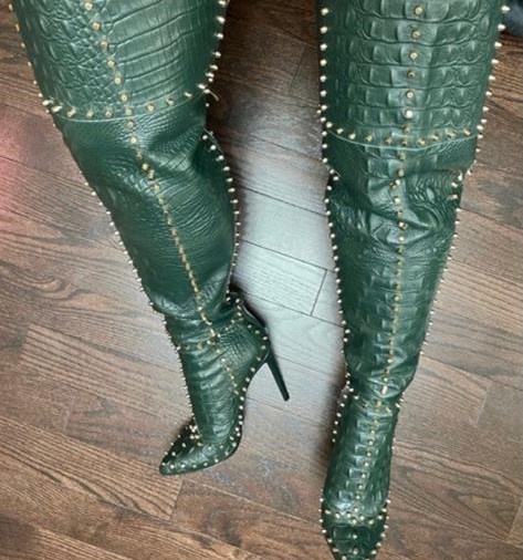 - جزمة بنمط جلد التمساح الصناعي باللون الأخضر من علامة "جينيفر لي" Jenniferle 2BD X CAI Green
