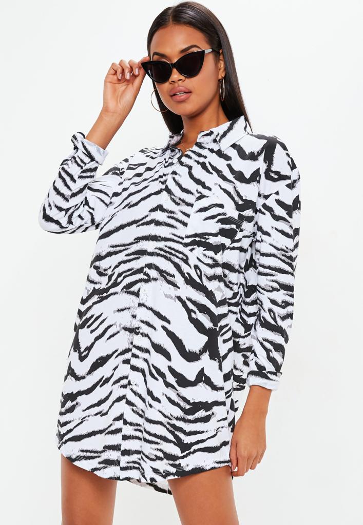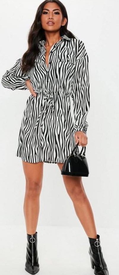 - فستاناً مخططاً قصيراً على شكل قميص مفتوح بأزرار من علامة Missguided Zebra "مس جايدد" Short Dress