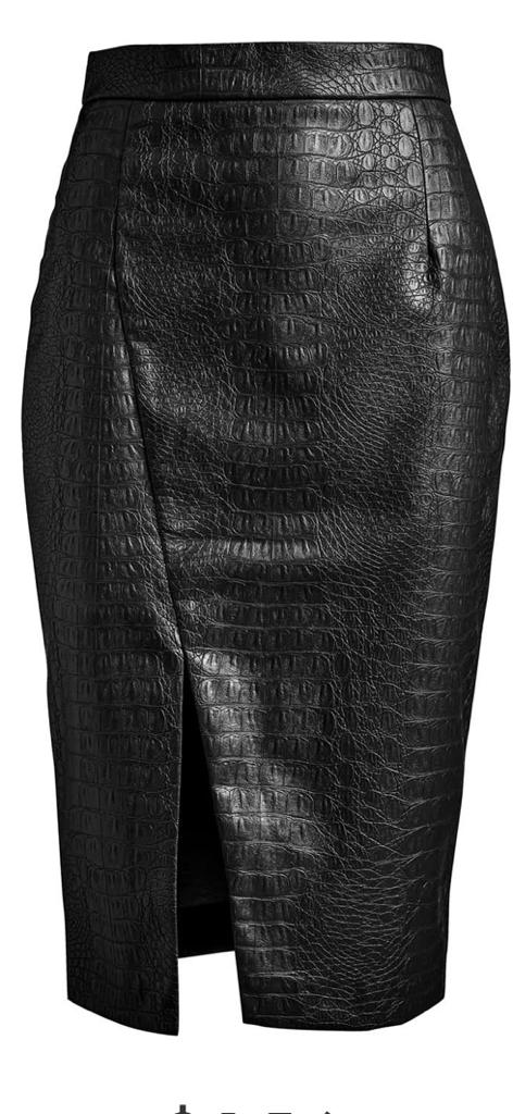 - تنورّة طويلة ضيّقة ومفتوحة من جلد التمساح الصناعي باللون الأسود من علامة "كونكويست" Conquista Faux Crocodile Pencil Skirt