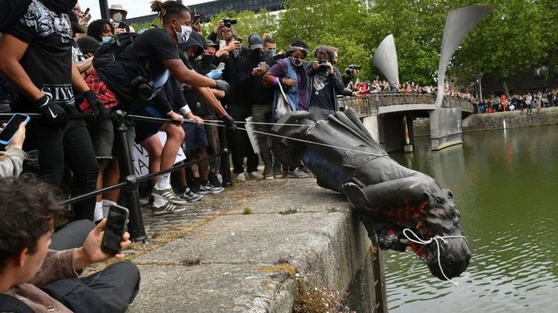 محتجون يسقطون تمثال إدوارد كلوستون تأييدا لحركة "حياة السود مهمة" في حزيران (يونيو) 2020