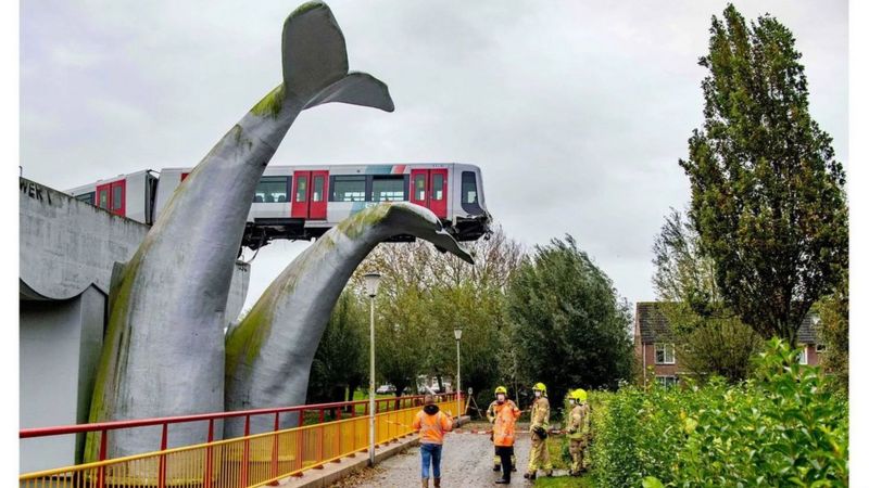 منحوتة لذيل حوت تنقذ قطارا من السقوط المحقق في هولندا في تشرين الثاني (نوفمبر) 2020