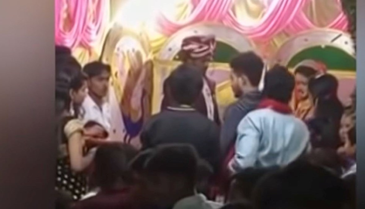 وأظهر الفيديو الذي التقط في ولاية أوتار براديش بحي هاميربور بالهند، العريس وهو يضع إكليلاً من الزهور حول رقبة عروسته لتقوم هي بصفعه مرتين متتاليتين أمام الضيوف لسبب غير معروف، وسط ذهول وصدمة العريس والضيوف.