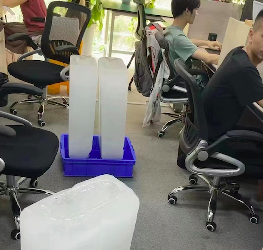 وفي بعض المناطق الصينية، استخدم السكان مكعبات الثلج لمقاومة الحرارة، إذ يحتفظ بها الأفراد إلى جانب مكاتبهم، فيما يقوم حراس الحدائق العامة بإعطائها لدببة الباندا.