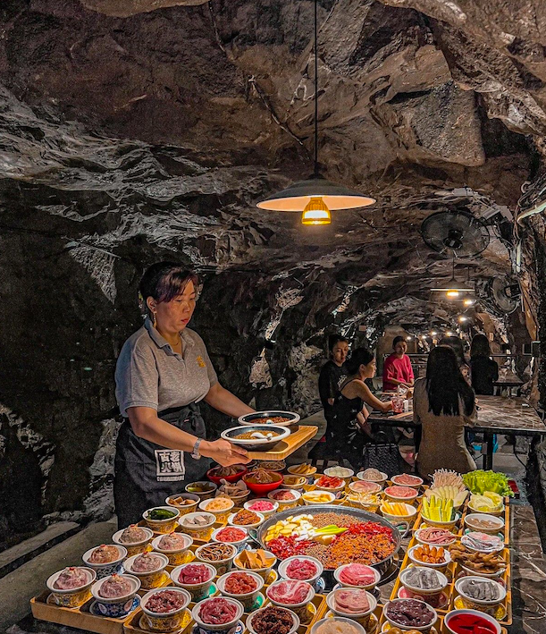 In the scorching hot #summer, #Chongqing people will take an adventure having #hotpot 30-m #underground #cave restaurant transformed from an old bomb shelter.