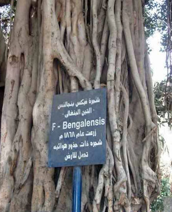 منذ 153 عاماً أحضر الخديو إسماعيل مجموعة من الأشجار من أنواع "الفيكس البنغالينس" أو "التين البنغالي" التي لها جذور هوائية من الهند، وتمت زراعتها في مناطق مختلفة بأحياء القاهرة والجيزة، لتزيين شوارعهما المختلفة، وحتى تُضفي عليها مظهراً جمالياً رائعاً، بالإضافة إلى مساحة الظل الكبيرة التي يوفرها هذا النوع من الأشجار.